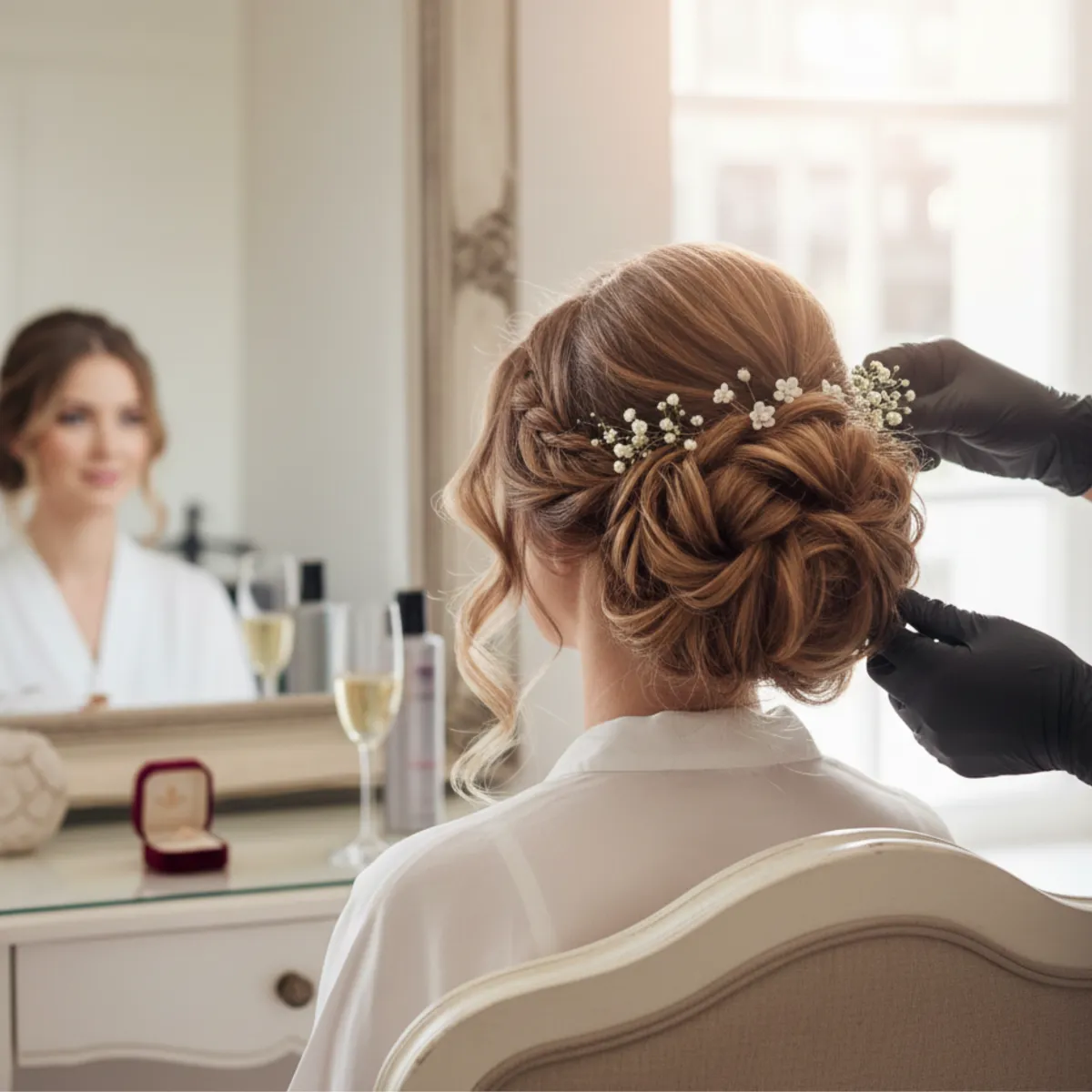 From sophisticated chignons and romantic braided styles to voluminous, textured looks and sleek, modern designs, we'll work with you to craft the perfect hair artistry. We use professional techniques and high-quality products to ensure your updo stays impeccable from the first photo to the last dance.